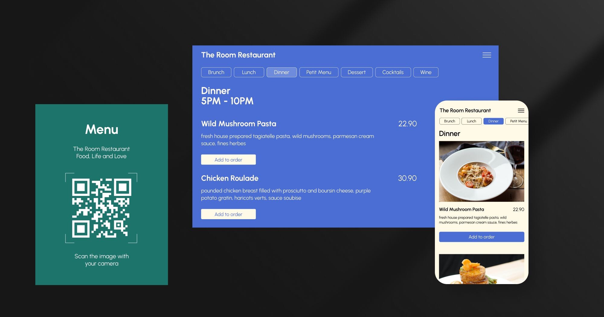 The menu can be accessed through a QR code or a link, eliminating the need for any apps. Customers are presented with all the offerings, complete with eye-catching photos, videos, and descriptive information, right away.